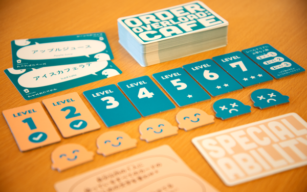 In a round, you deal a certain number of cards face up and read them aloud so that everyone knows all the orders placed, then you deal these cards out face down to the players. On a turn, you need to name an order that's in someone else's hand. Fail to do so, and you're eliminated from play! If you collectively reveal a set number of drinks before everyone is eliminated, then you clear the level and are ready to take on tougher challenges...