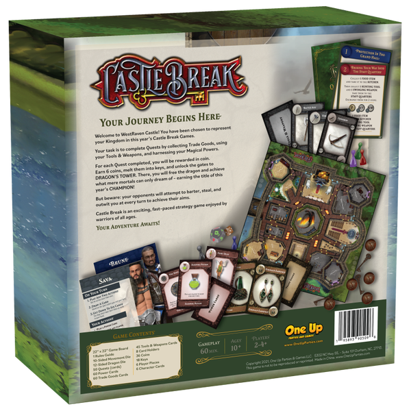 Warriors (the players) have been chosen to represent their Kingdom in this year’s Castle Break Games. Players' task is to complete Quests by collecting Trade Goods, using Tools & Weapons, and harnessing their Magical Powers.
