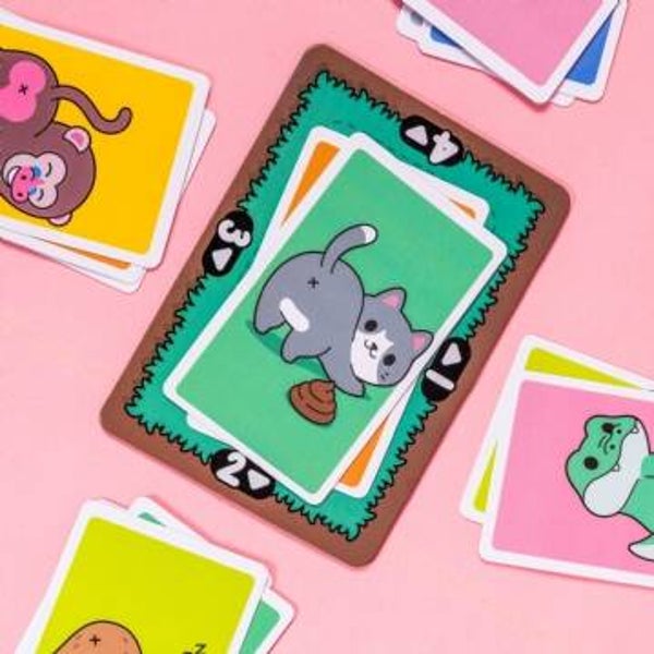 The aim of the game is to spot a front and butt match and be the first to react, allowing you to pick up the cards. Watch out for the additional surprise action cards to trigger confusion - when the shout symbol is displayed you will have to make the noise of the animal on that card, or if you see a poop card this means its a race to place your hand in the middle.