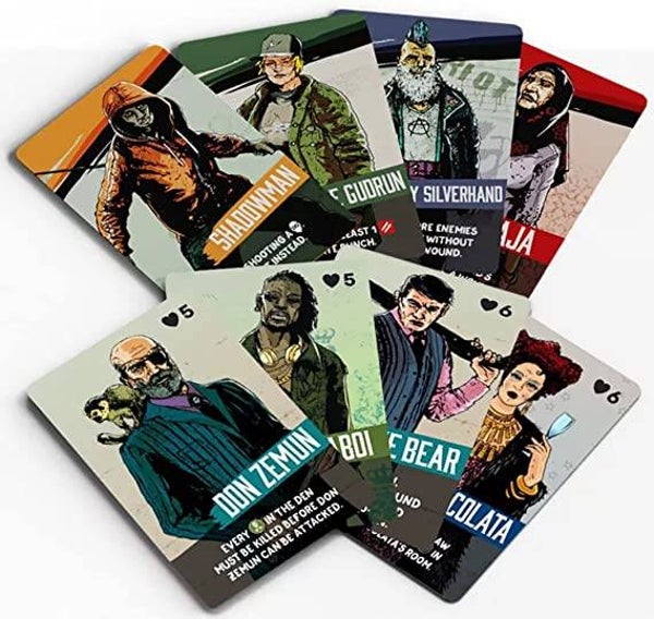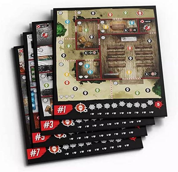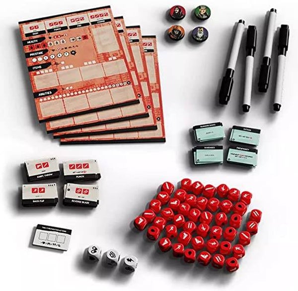 The aim of Vengeance: Roll & Fight is to infiltrate a gang den, carve your way through its rooms, and kill the Boss, while completing side objectives printed on the dens themselves.