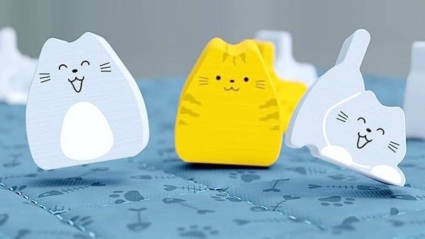 - Features a quilted, fabric board that lays over the back of the box, completing the miniature bed playing surface. 8 wood kittens and cats per player - 32 adorable cat pieces in all