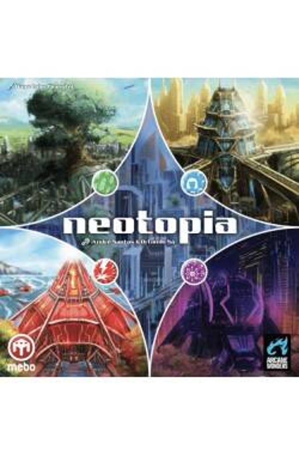 In Neotopia, a competitive fast paced tile placement pattern building game, you are part of a team of Visionaries who are building a futuristic pilot city focused on the fields of Energy, Technology, Community and Sustainable food.