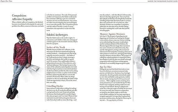 - Guidelines and advice for non-traditional chronicles, including: all Thin-blood, troupe-style, virtual play, and play without a Storyteller.