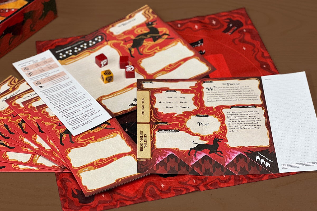 Collaborate with the rest of your pack and the Diviner to create the conflict, characters, and resolutions to your tale. Special dice and a tarot-style deck generate interesting twists and turns. This no-prep, rules-light narrative roleplaying game is filled with mystery, magic, and the unforeseen.