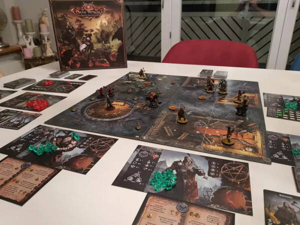 Dark Rituals: Malleus Maleficarum is an asymmetric “One vs Many” miniatures board game for 2 to 5 players with an expansion for a solo mode where one player controls the Witch Master. In "one vs many", a team of people control a small band of Heroes defending villagers from a single player controlling the vile Forces of Evil. All players manage a pool of stamina that is used to pay for their character’s actions. Game play is dynamic with little downtime: turns alternate between the two forces with a player on each side taking one or two actions each turn, so long as they still have stamina.
