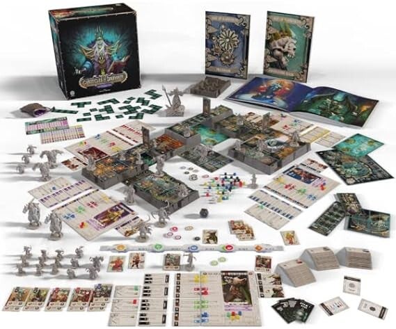 Chronicles of Drunagor - Age of Darkness is a fully cooperative and strategy board game of tactical combat in a dungeon crawl adventure for one to five players. CoD-AoD is based on multiple 3D scenarios, each of them played separately or on a continuous storyline. Each scenario has its own unique setup, darkness rules and different goals that will be needed to be achieved in order to obtain victory. Played over a series of rounds until either the chosen adventure objective is achieved by the heroes or a single hero dies or is corrupted by the darkness itself. The order of activation is dictated by the initiative track and it alternates between heroes, monsters and the darkness itself. Once they all activate, a round is over and a new one begins, so players win or lose as a team. The game is won when the adventure objectives are met. The game is lost when one player is either killed or corrupted by darkness.