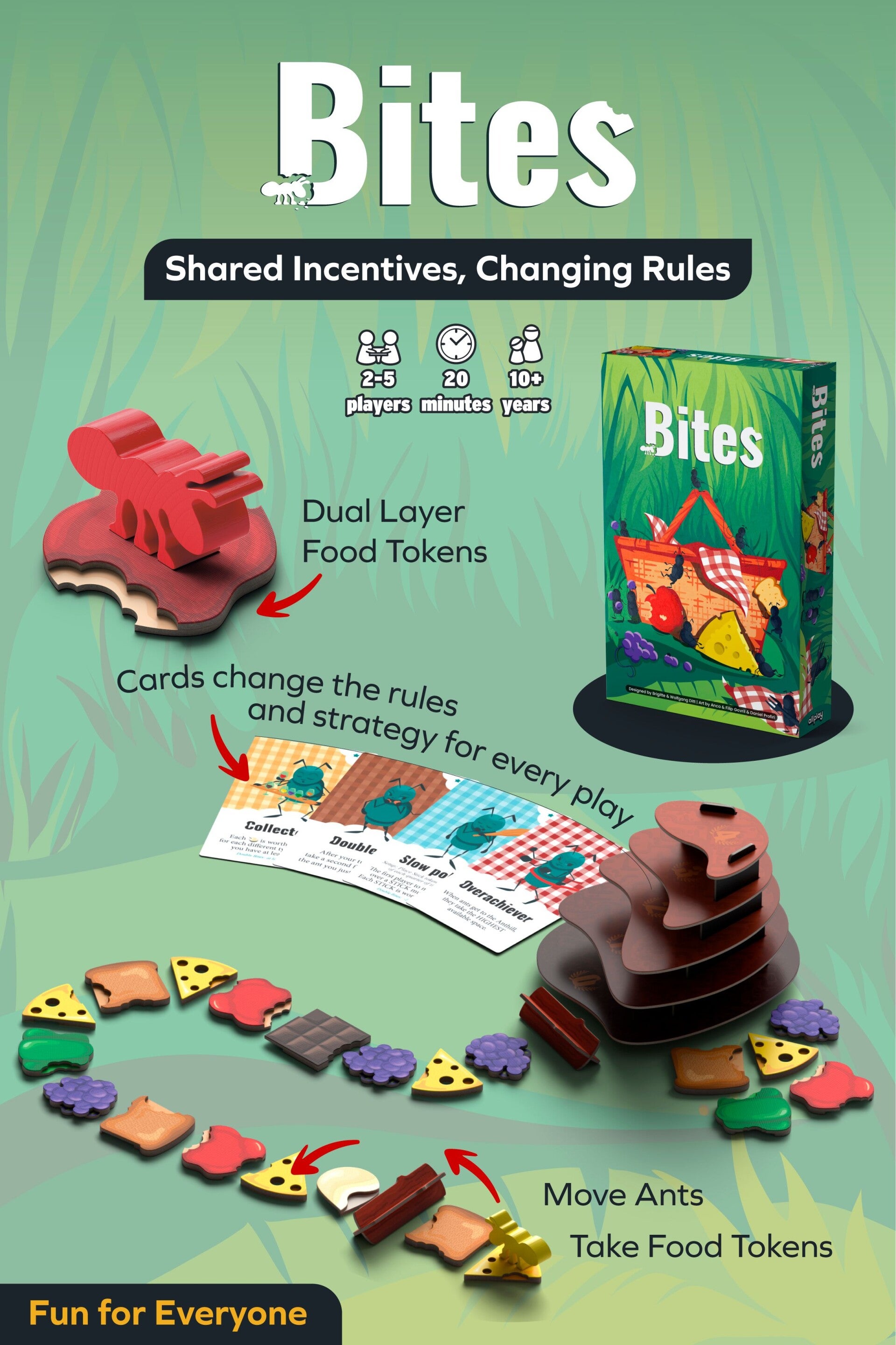 However, players don't know for sure how much the food is going to be worth until the matching ant makes it to the ant hill at the end of the trail. This creates shared incentives as players work together to advance some ants and hold others back.