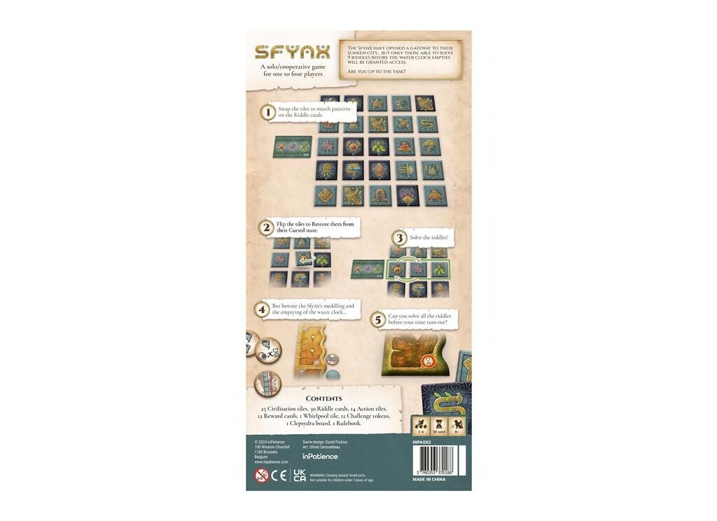 Every 25 moons, the mysterious Sfynx open a gateway to their sunken city...but only the adventurers able to solve nine riddles before the clepsydra empties will be granted access to its vanished splendors and forgotten knowledge. Are you up to the task?
