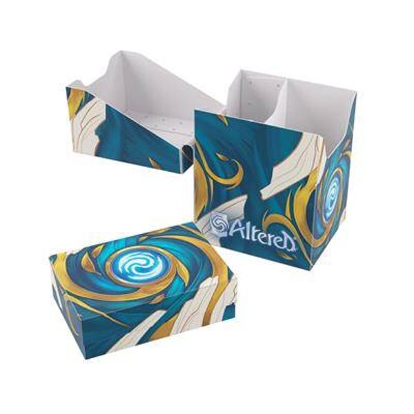 The budget-friendly way to hold your deck and more in style! The Altered® Expedition Soft Box is the all-in-one casual solution for players of the highly awaited TCG. This full color printed and officially licensed deck box is packed with ingenious features. It protects a full double-sleeved deck of cards and includes an innovative token box! This token box has a smart click-lock mechanism to keep all tokens safely stored – even while pulling it out. Once opened, the lid of the box stays upright for convenient access during gameplay. The Expedition Soft Box is equipped with Gamegenic’s very own Cobra Neck-Technology: the lid can be opened more than 180° for easy access. Additionally, it comes with a self-locking lid and write-on-strip. The separator inside ensures that the deck stays in place, even when the token box is taken out. The Altered® Expedition Soft Box comes in two amazing designs from the game and is a must-have for all Altered®, TCG, and LCG players.