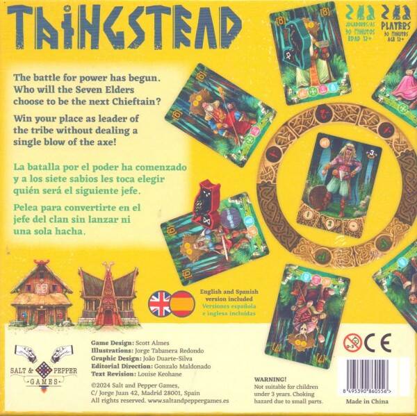 The year is 1130. An assembly is about to be called to elect a new chieftain of your Viking village. There is only one opponent who could threaten your election. Over the next few days you must balance your time between the clans and the Thingstead (where the elders are gathered) in order to ensure the votes go to you instead of your rival. At the end of the game, the elders of the Thingstead call a vote and decide a winner.