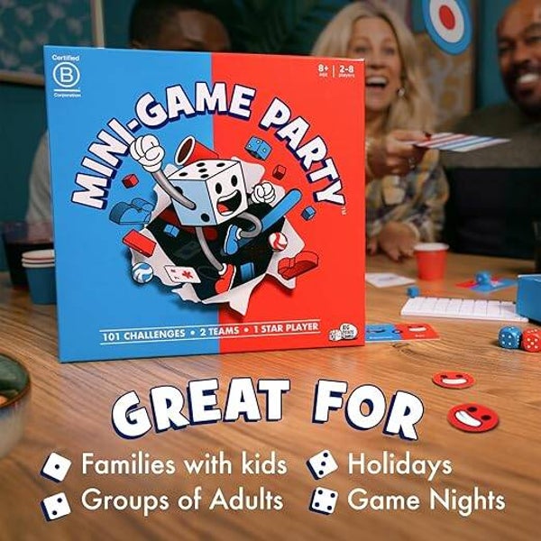 TEAMS CHANGE EVERY ROUND: One minute you're on the Blue Team throwing cubes into a cup, the next you’re on the Red Team flicking pucks or guessing the number of items in a mystery box