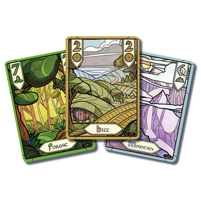 The deck consists of 37 cards, with one card being set aside as "lost" each hand. Whoever is dealt the One Ring becomes Frodo, then other players choose from the available characters based on their hand. The One Ring is the game's only trump card, but initially rings can't be led until someone plays one off-suit.
