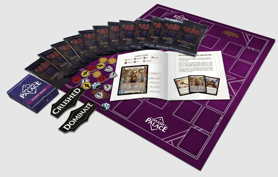 Smash Palace brings multiplayer melee to Flesh and Blood like never before, and it's as simple as Crack, Shuffle, Play! Crack 3 packs, remove the last 3 cards from each pack, Shuffle the rest, and Play.