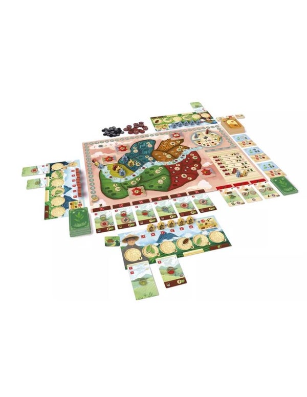 Harness the power of your deck of cards to orchestrate up to four main actions each game round. The strength of these cards is important for performing the chosen action; the higher the strength, the better the effects you will achieve. With your cards, you will build new tea gardens, acquire new cards, trade your tea with eager caravans, ferment your tea leaves, and harvest more tea. Couple your main actions with the power of secondary actions to navigate the river, produce tea cups, or practice tea studies at the university.