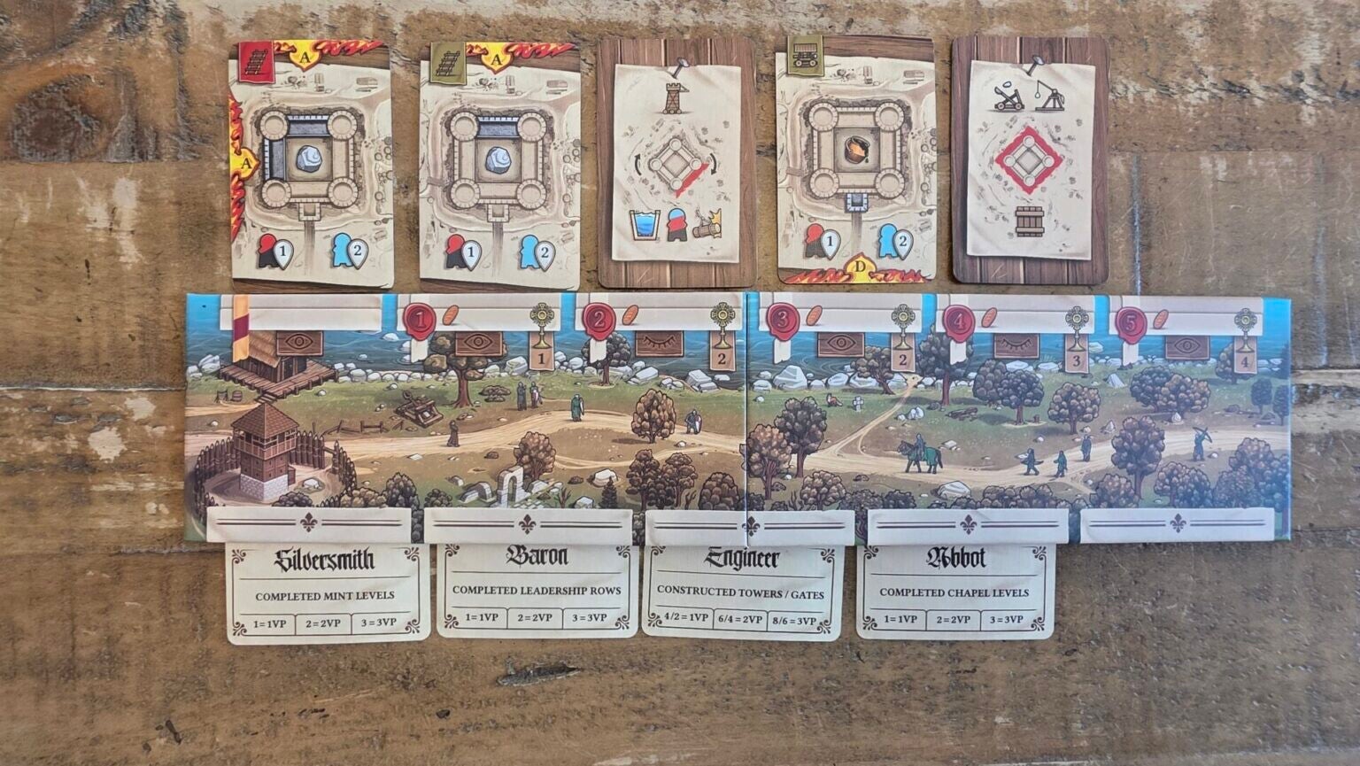 In The Anarchy, players take on the role of English nobles loyal to King Stephen. Over five rounds, players must build their domain, defend their castle from attacks by the approaching Angevin armies, and storm strongholds loyal to Matilda with their own crafted siege weapons. The player who can accumulate the most bravery, loyalty, influence and might — while avoiding discontent — will prove to King Stephen they are his most loyal ally, thereby earning his largest earldom.