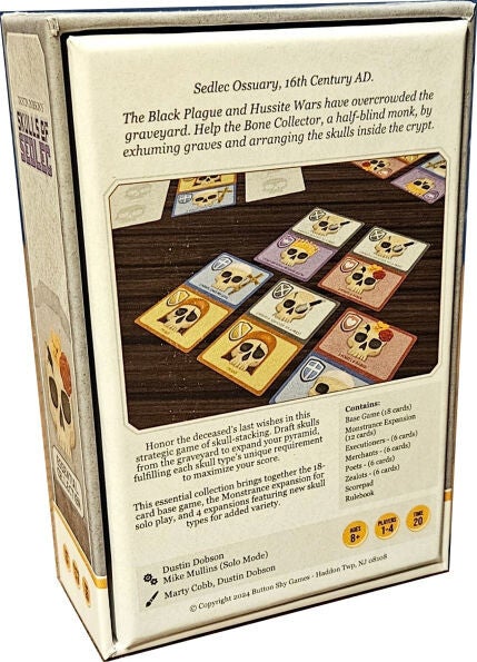 Dig up graves from the graveyard to reveal cards, take cards into your hand to collect skulls, and arrange the cards from your hand into a stack. Whoever better honors the deceased’s last wishes will score more points.