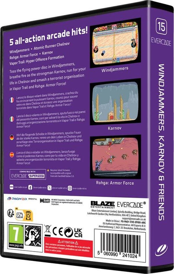 This curated selection includes the fast-paced competitive action of Windjammers and the popular platform adventure Karnov, for authentic arcade experiences on Evercade.
