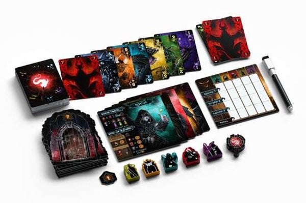 In this trick-taking game, you must decide when to win tricks and when to increase the value of the number of tricks you think you might take. However, points are limited, so if any players end up taking the same amount of tricks, they must divide the points among themselves. After 3 rounds of play, the player with the most points wins.