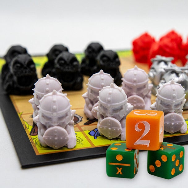 This compact strategy battle game is deceptively simple, with remarkable strategic depth. The combat is packed with decisive choices, action point management, area control, press your luck, and sometimes a bit of puzzle-solving.