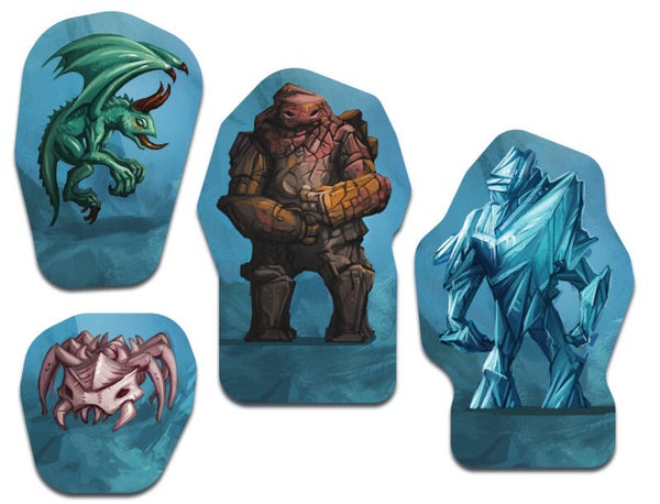 During the game, you choose a unique knight or demon, each with a variety of special powers—such as the Flame Knight’s ability to surround his foes in fire, or the Bone Crusher’s power to summon skeletal minions. The cards you play from your hand to perform actions can each be used in different ways, and a set of unique location tiles allows you to create the monastery with a different layout every game.