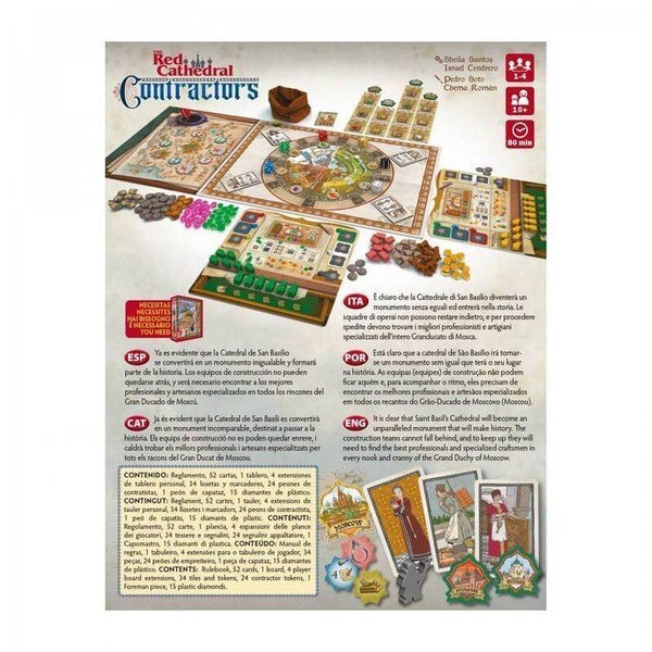 The expansion comes in a box that contains almost as much content as the original game and takes the experience into another dimension. In Contractors we find 10 new guilds that can be combined with those from the basic game, 6 additional blueprint cards, and a new card for the solo mode. Many of these new guilds use the Contractors module, which among other things, adds a new board containing a map of Russia. We Will send our contractors throughout Russia to recruit the talent of the best specialists and artisans of the country to aid in the construction of the cathedral.