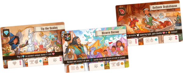 Artisan dragons, the smaller and magically talented versions of their larger (and destructive) cousins, are sought by shopkeepers so that they may delight customers with their flamecraft. You are a Flamekeeper, skilled in the art of conversing with dragons, placing them in their ideal home and using enchantments to entice them to produce wondrous things. Your reputation will grow as you aid the dragons and shopkeepers, and the Flamekeeper with the most reputation will be known as the Master of Flamecraft.