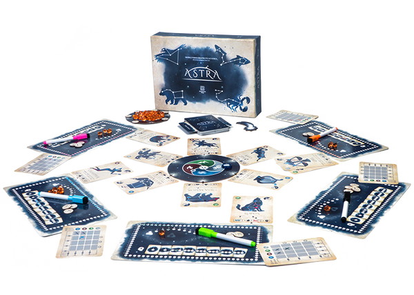 Astra is a clever mix of tactics and strategy, with a streamlined and intuitive rule set that makes it easy to pick up and quick to play. A game of Astra consists of continuous player turns until a certain number of Constellation cards are taken, when, after an endgame scoring, the player with the most Fame points wins.
