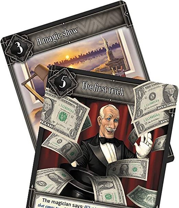Deckscape: Behind the Curtain is the fifth title in a series of cooperative games inspired by real escape rooms in which a group of people is "trapped" inside a room full of puzzles and odd items. The goal of the game is to solve puzzles, understand the plot of the story, and make intelligent use of the items provided in order to exit from the room as quickly as possible.