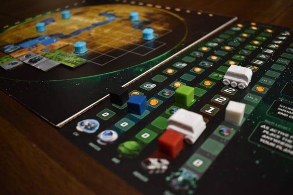 Planet Unknown innovates on the popular polyomino trend by allowing simultaneous, yet strategic turn-based play via the Lazy S.U.S.A.N. space station in the center of the table.