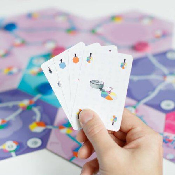 Your beetles race over a track of colourful flowers. On your turn you play a card to move your beetle to the next flower with a corresponding colour. But there are a few twists: