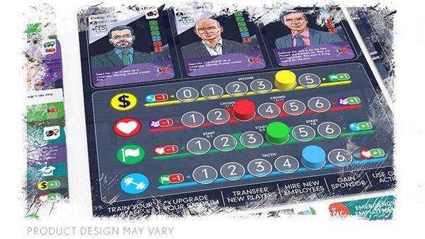 Eleven: Football Manager Board Game is an economic strategy game set in a world of sport. Your task is to manage and grow your own football club over the course of a season. During the game, you hire staff members, including trainers, physical therapists, PR specialists, and directors. You acquire sponsors, expand the stadium infrastructure, and take care of your club's position in social media. Among the many tasks on the list are transferring new players and choosing the right tactics for each of the upcoming matches.