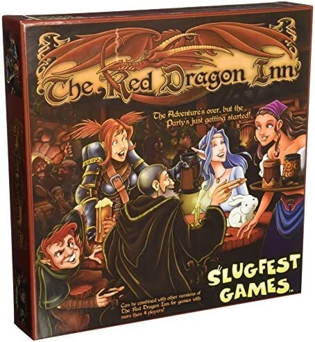 In Red Dragon Inn, you and your friends are a party of heroic, fantasy adventurers. You've raided the dungeon, killed the monsters, and taken their treasure. Now you're back, and what better way to celebrate your most recent victory than to spend an evening at the Red Dragon Inn. You and your adventuring companions will spend the night drinking, gambling, and roughhousing. The last person who is both sober enough to remain conscious and shrewd enough to hold onto his Gold Coins wins the game.