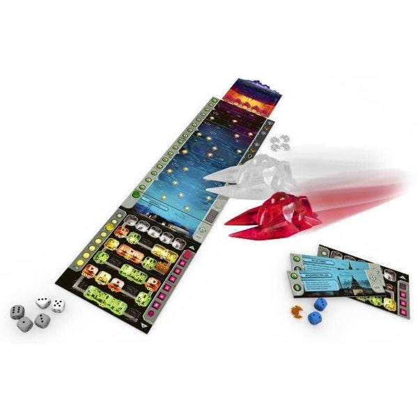 In dit verslavende solospel komen de vijandelijke schepen bij elke actie die je uitvoert dichterbij je stad die je uit alle macht probeert te verdedigen. De dobbelstenen bepalen de kracht van je acties: hogere waardes zorgen voor krachtigere acties, maar vergroten ook de snelheid van de vijandelijke schepen. Lukt het jou om de stad van de ondergang te redden?