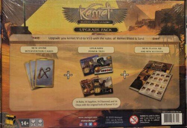 This is the upgrade pack for Kemet V. 1 owners to transform the game to Kemet: Blood and Sands.